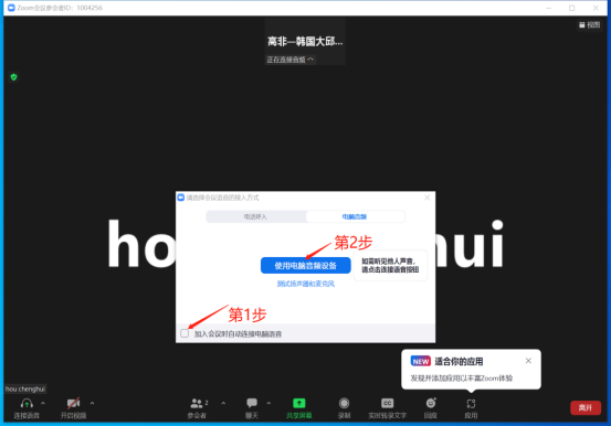第五步:先点击“加入会议时自动链接电脑语音”,再点击“使用电脑音频设备”,点击“开启视频”则完成。
