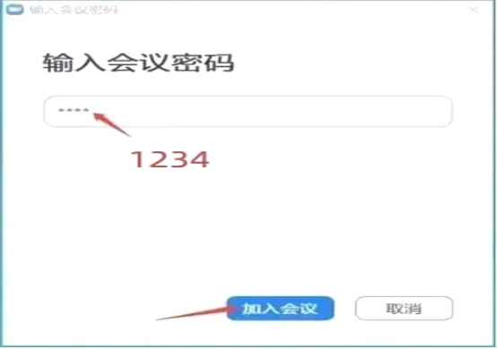第四步:输入统一密码“1234”,点击“加入会议”